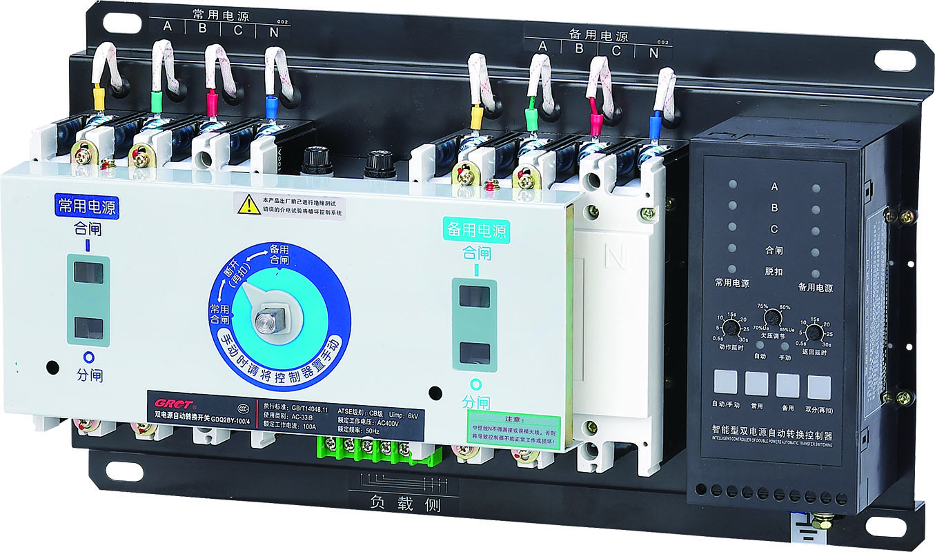 GDQ2B series dual power automatic transfer switch is CB grade, suitable for AC 50Hz / 60Hz, rated working voltage 230/400V, rated current up to 225A applied in dual power supply system. In the case of common power failure, the switch can engage with standby power or switching to the power-generation machine to ensure the reliability and safety of the power supply. The product has a flame-fighting interface, which can be easily linked with the flame-fighting equipment, and the switch is remotely controlled to cut off the power. The Flame-fighting product is equipped with generator interface. This series of products are divided into one-piece or split-piece types.