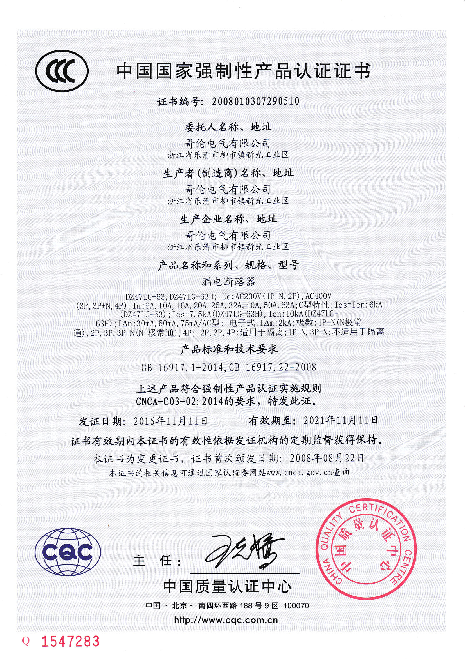 符合IEC1009-1、GB/T 16917.1、 GB/T 16917.22標(biāo)準(zhǔn)