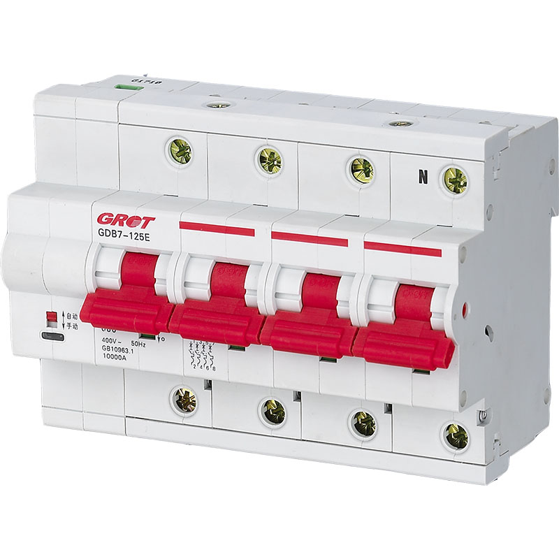 GDB7N-100E/ GDB7-125E電能表用外置小型斷路器,用于信息采集系統(tǒng)管理,根據(jù)用戶用電賬戶的余額情況,由預付費電能表實施分、合閘控制的斷路器。斷路器額定絕緣電壓500V,額定工作電壓AC230V/400V, 遠程全自動控制電壓AC230V,額定電流至125A以下的線路中對照明、配電線路及設備的過載、短路保護。